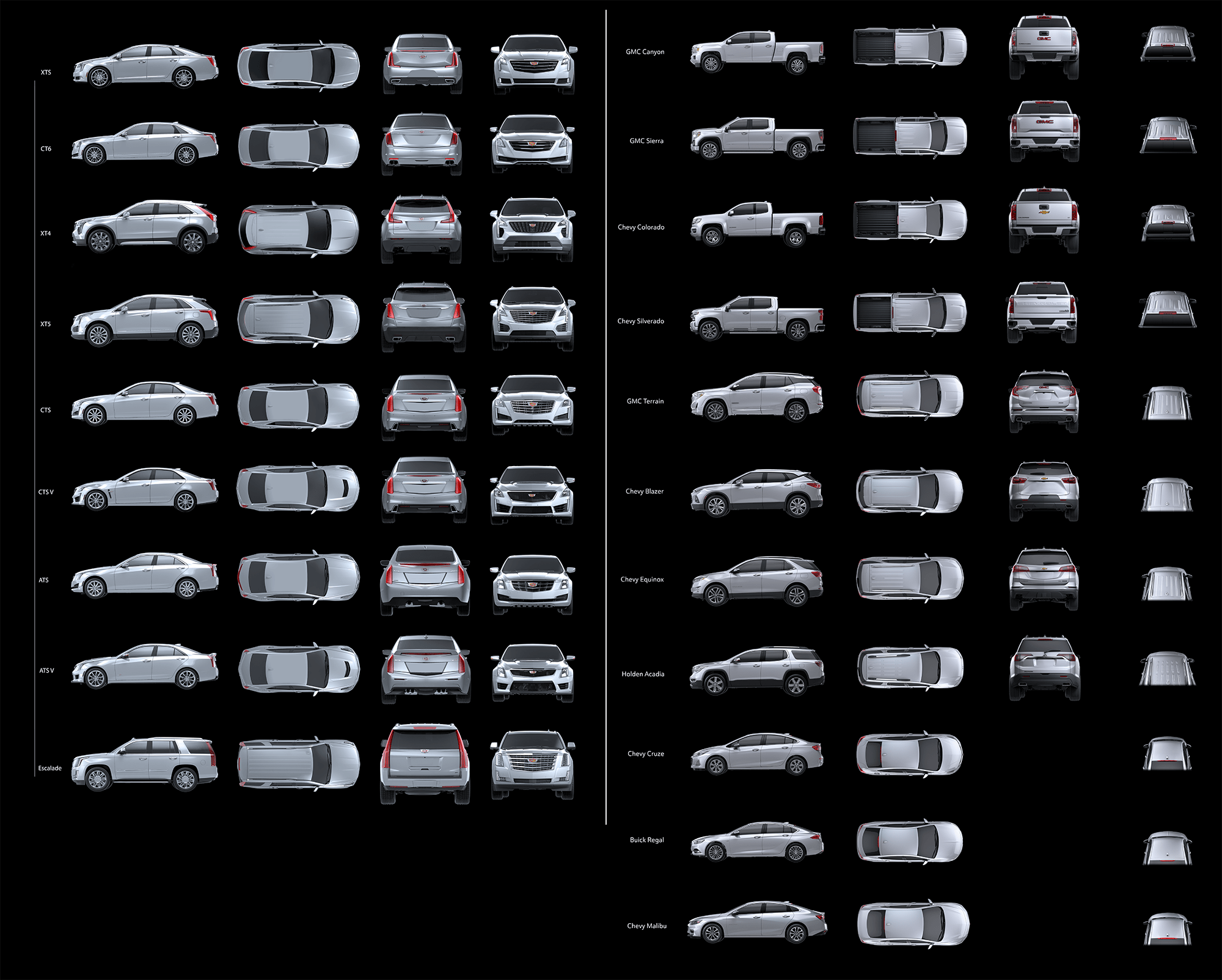 I created a workflow for camera system visuals that allowed for a render with an alpha that still maintained detail, shading of the vehicle, but allowed for backplate color to be generated via code in software. This was done in order to reduce memory footprint in software builds for camera systems for all GM programs.