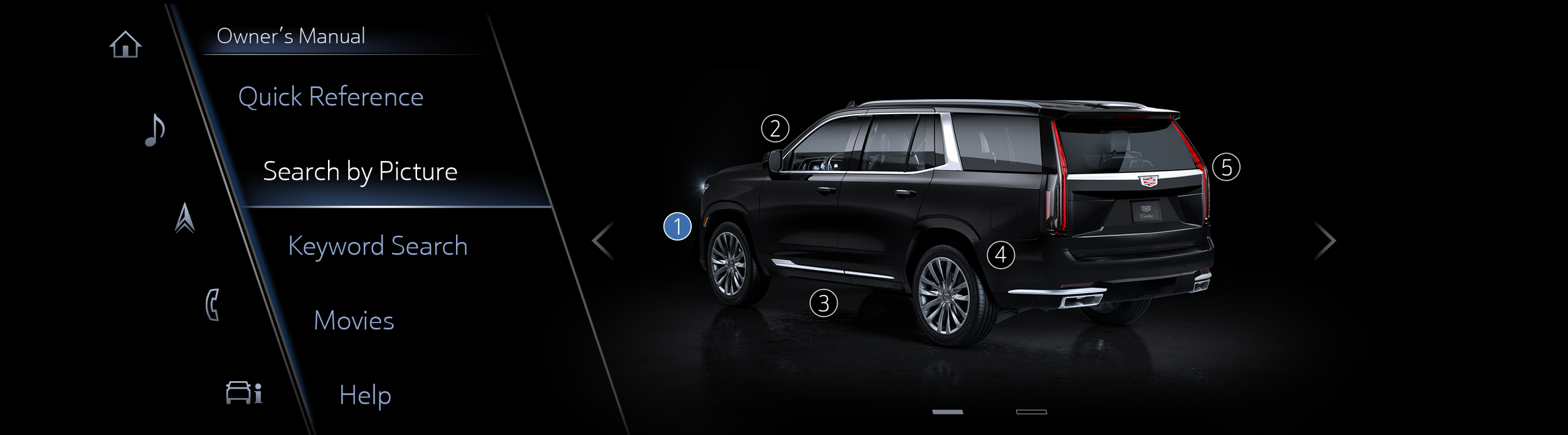 Supported imagery with photorealistic renderings of both exterior and interior of the Cadillac Escalade for all owners manual. Along with UI contributions. Below are samples of various visualizations created.