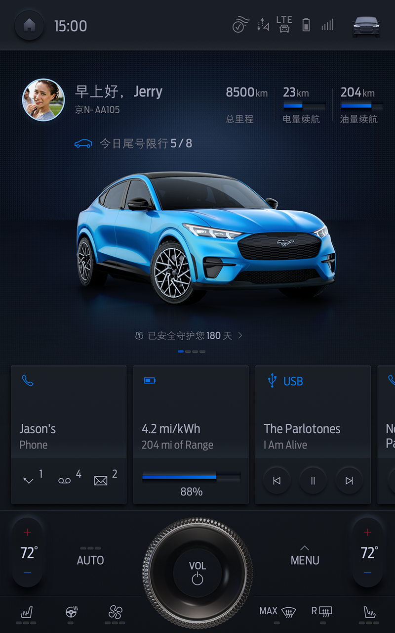 Homescreen Digital Twin visualization for Mach E China. Vehicle visualizations, UI design.
